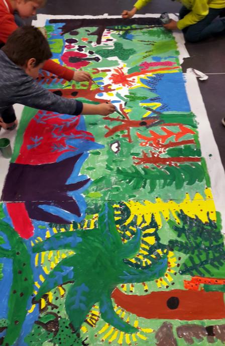 Two 2nd and 3rd primary classes of the Pré des Agneaux School have created collective works there, after reading the book Sortie de joueur (Player's Escape), a tribute book to the work of the Douanier.